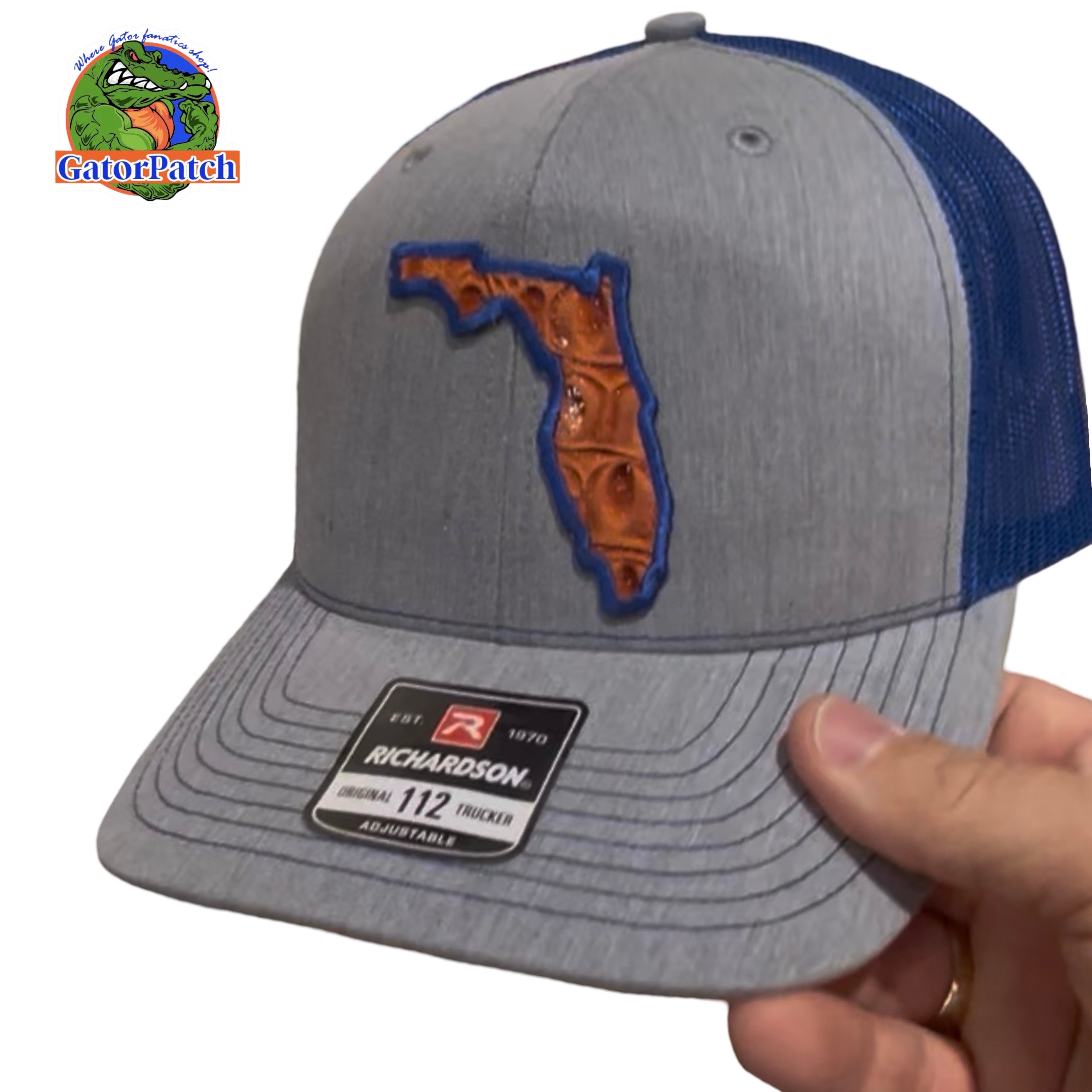 This Richardson 112 has a pho gator hide state embroidered patch logo. This is Fire!