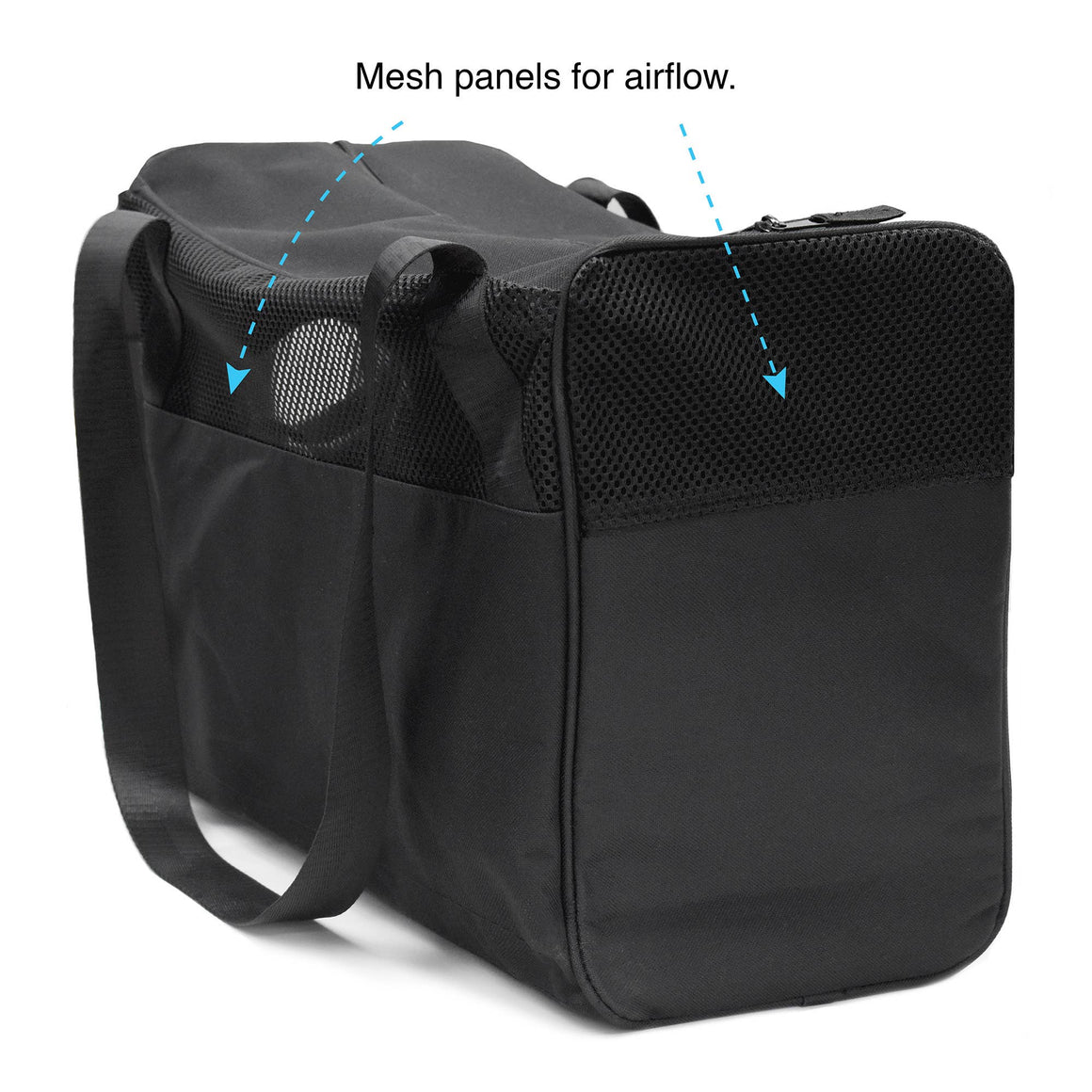 The Furry Fan Pet Carrier is the ultimate combination of style and functionality for pet owners who love to show off their team spirit! With its hoodie front adorned with a full-color team logo and wordmark, it's not only a carrier but also a fashion statement. The functional hood allows your pet to peek out comfortably, while the fabric "paws" add an adorable touch. Safety and comfort are paramount, with features like an adjustable cinch toggle and durable top zipper to keep your furry friend secure, and mesh panels for ample airflow. The sturdy 1.5" wide webbing straps with a 13" drop ensure easy carrying, and the removable inner pad makes cleaning a breeze. Plus, its practicality extends to travel, as it can be stowed beneath most standard airline seats, making it convenient for pet owners on the go. With dimensions of 16" in length, 8" in width, and 11" in height, it's spacious enough to accommodate pets up to 20 lbs while still being compact and manageable.